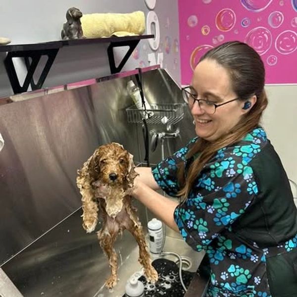 Specializing in nervous or anxious pets, I am proud to provide a gentle, low-stress grooming experience. With a patient, caring approach, I take the time to build trust with every dog, ensuring a positive experience from bath to brush.